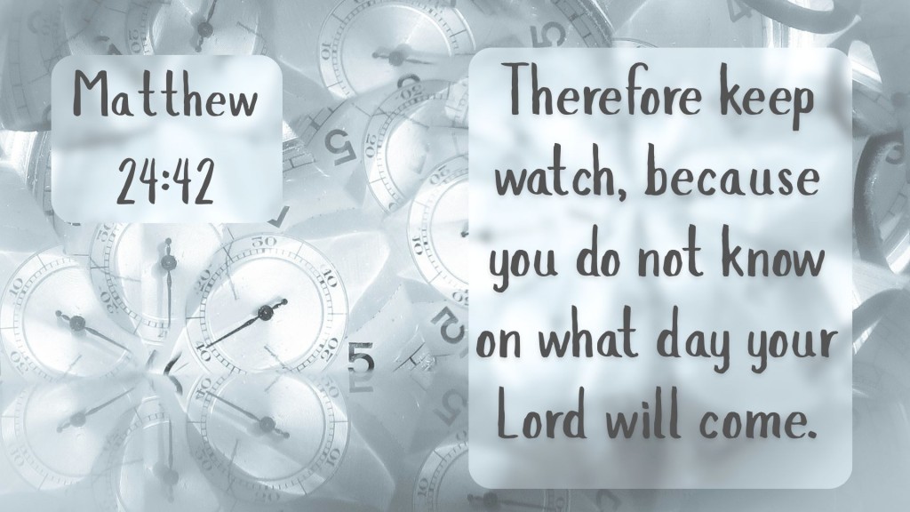 36 Jesus said: ‘But about that day or hour no one knows, not even the angels in heaven, nor the Son, but only the Father. 37 As it was in the days of Noah, so it will be at the coming of the Son of Man. 38 For in the days before the flood, people were eating and drinking, marrying and giving in marriage, up to the day Noah entered the ark; 39 and they knew nothing about what would happen until the flood came and took them all away. That is how it will be at the coming of the Son of Man. 40 Two men will be in the field; one will be taken and the other left. 41 Two women will be grinding with a hand mill; one will be taken and the other left. 42 ‘Therefore keep watch, because you do not know on what day your Lord will come. 43 But understand this: if the owner of the house had known at what time of night the thief was coming, he would have kept watch and would not have let his house be broken into. 44 So you also must be ready, because the Son of Man will come at an hour when you do not expect him.